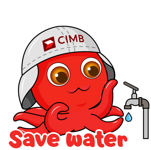 CIMB's Octo character promotes saving water, turning off a tap with a cheerful smile.