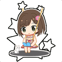 Miku Maekawa from Cinderella Girls reads a book on a swing with a white cat.