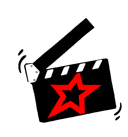 Animated clapperboard with a red star, clapping shut, representing Cineworld Cinema and movie magic.