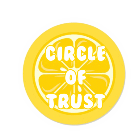 A vibrant yellow lemon slice graphic with the text 'Circle Of Trust' in white, representing loyalty and community.
