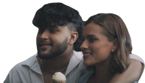 Joel Deleon and his happy partner on a date, smiling and enjoying ice cream together, showing a sweet moment of affection.