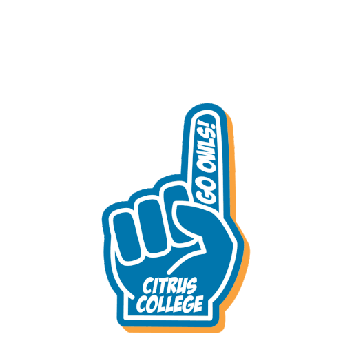 An animated foam finger sticker for Citrus College, featuring 'GO OWLS!' text, perfect for showing school spirit.