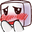 Kofu, the pixel art marshmallow character, claps with a sad expression, then covers its mouth.