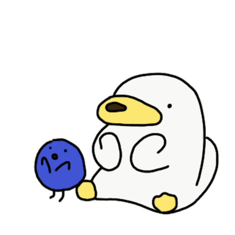 A cute, white, duck-like character claps its hands enthusiastically next to a small, grumpy blue friend.