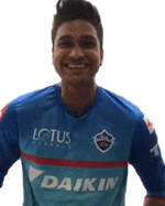 A Delhi Capitals cricketer smiles and claps, showing congratulations or appreciation. Perfect for celebrating success.