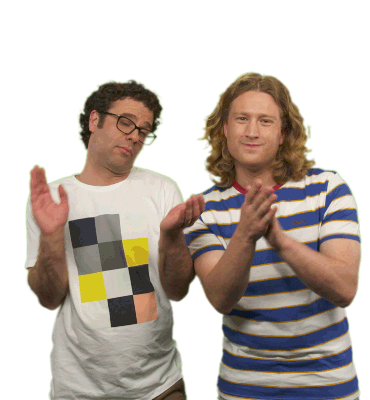Trent and Josh from Lego Masters Australia enthusiastically clap, showing their approval and appreciation.