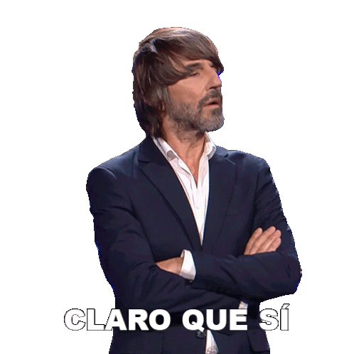 Santi Millán, arms crossed, confidently says 'Claro Que Sí' (Of Course Yes) with a determined expression.