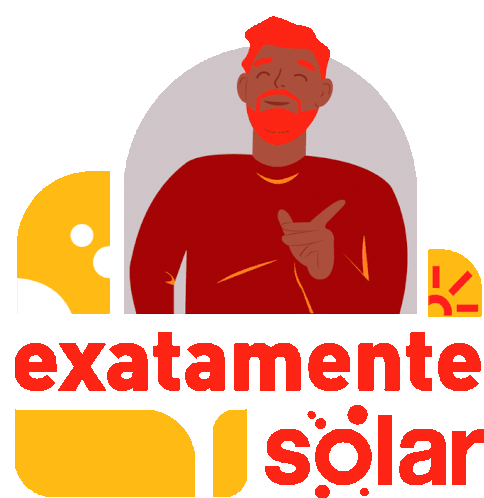 An animated sticker featuring a man pointing, with Portuguese text 'exactly, that's right, solar' promoting solar energy.