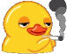 A pixel art yellow duck with a relaxed expression, smoking a cigarette with smoke rising.