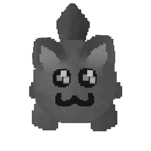 a pixel art of a cat with a mustache and big eyes