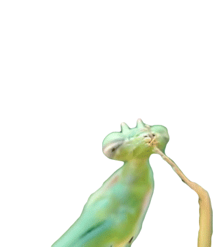 A praying mantis meticulously cleans its foot, demonstrating its natural self-grooming behavior in this animated sticker.