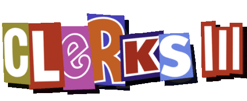 Animated sticker featuring the iconic ransom-note style title logo for the film Clerks III.