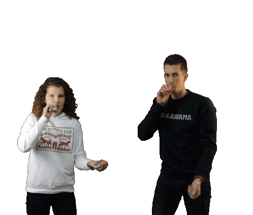 Vincent Van Dijk and Anoukvdkerkhof celebrate joyfully with a burst of confetti, blowing party horns and cheering.