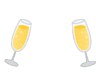 Two animated champagne glasses clink together in a celebratory toast, with bubbles and a sparkle effect.