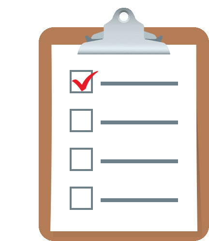 a clipboard with a checklist and a red tick