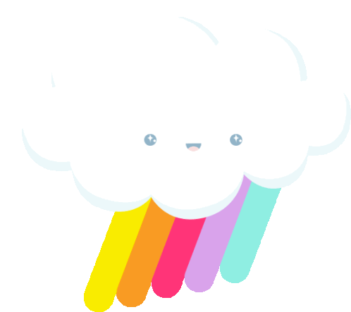 An animated sticker of a cute, happy white cloud with a smiling face and a vibrant rainbow.