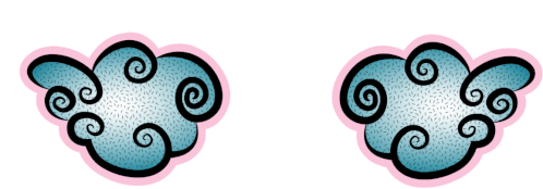 Marycmykart's animated sticker features two stylized blue clouds with pink outlines moving together to reveal a vibrant pink heart, symbolizing a sweet kiss.