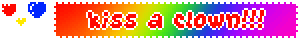 A person in a clown costume with white face paint, sunglasses, and a wig, throws their hands up in an excited surprise gesture.