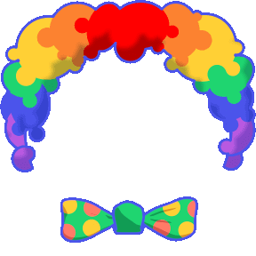 Animated Discord sticker featuring a colorful clown wig and bow tie, with the clown's face transforming into a bloody splatter.