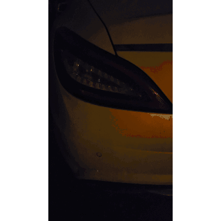 A close-up of a Mercedes CLS218 car's taillight, which flashes brightly, creating a winking effect.