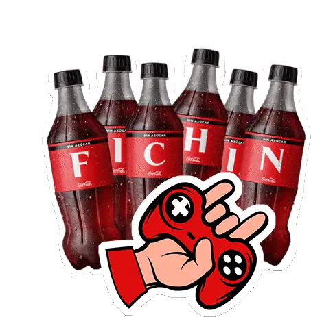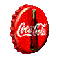 A pixelated, red and brown Coca-Cola bottle cap is shown spinning, perfect for a retro or beverage-themed sticker.