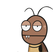 A cartoon cockroach character, Crochies, performs a dab dance move, showcasing a playful and confident attitude.