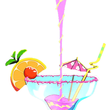 A vibrant Brawl Stars-themed summer cocktail, garnished with an orange slice and cherry, being poured into a glass.