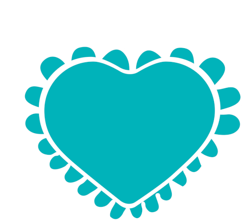 A vibrant teal heart with a scalloped white border, identified as a Coco Loko sticker, perfect for scrapbooking.