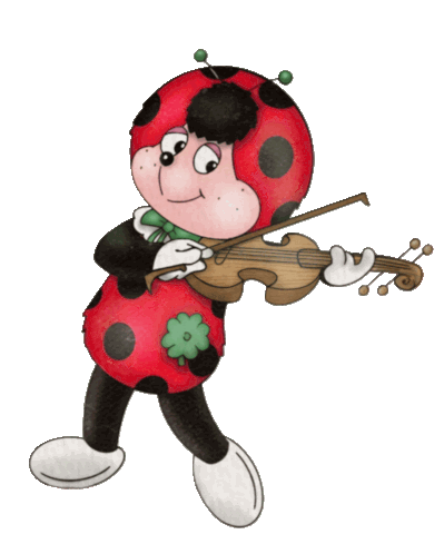 a ladybug is playing a violin with a clover on it
