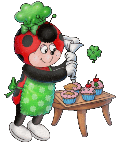 a ladybug is decorating cupcakes on a table with a green clover