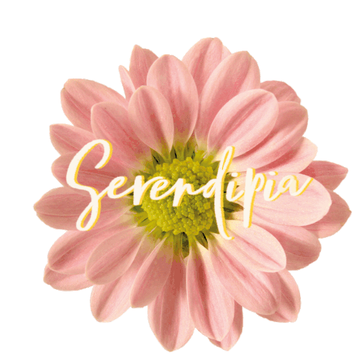 A beautiful animated sticker by Cocoloko featuring a pink flower with the elegant word 'Serendipia' written over it.