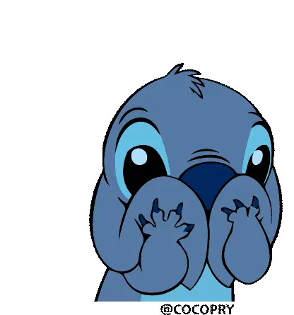 Cocopry Stich sticker featuring the beloved alien character with a curious, questioning expression, perfect for asking 'what?' or 'why?'