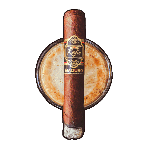 A Kaffe Maduro cigar rests on top of a frothy cup of coffee, creating a classic pairing.