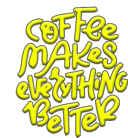 A vibrant animated sticker featuring the uplifting quote 'Coffee Makes Everything Better' in a stylized yellow font.