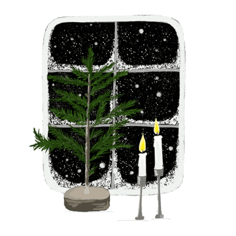 An adorable animated yellow chick holding a miniature snow globe with a snowman inside, blinking its big eyes.