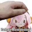 Animated sticker featuring Colson Montgomery and Megurine Luka, depicting a person petting a stuffed animal.