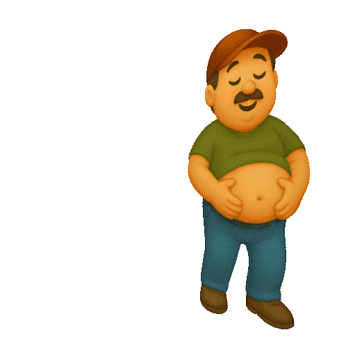a cartoon of a man holding his belly with the words coma un pepe above him