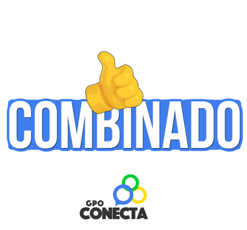 An animated sticker featuring the word 'Combinado' with a yellow thumbs-up emoji, alongside the GPO Conecta logo.