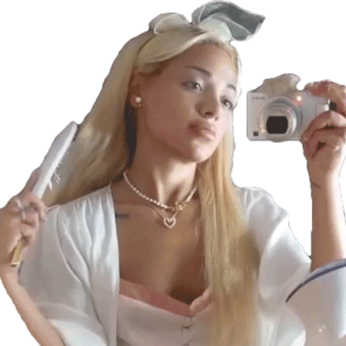 Gabriella Demartino takes a selfie while combing her long blonde hair, a moment from Fancy Vlogs By Gab.