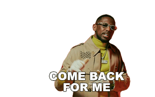 Fabolous, wearing glasses and a trench coat, points and says 'Come Back For Me' in this animated sticker.