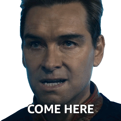 Homelander from The Boys sternly commands "Come Here, That's An Order" with a serious expression, asserting his authority.