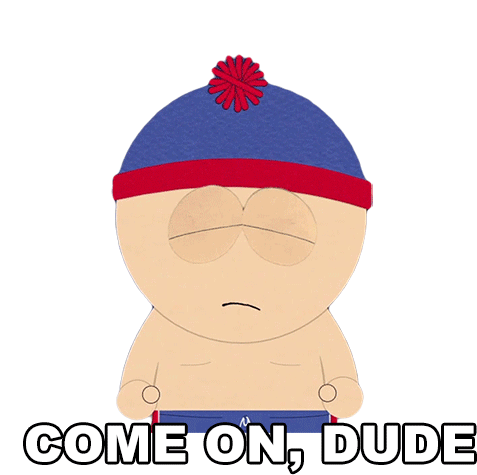 Stan Marsh from South Park looks frustrated with the caption "Come On, Dude!" below him.