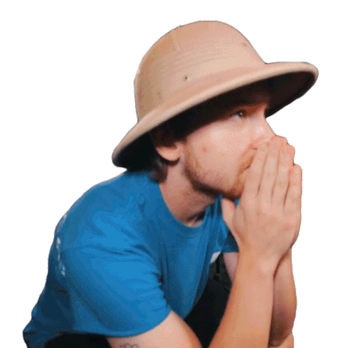 Peter France from Corridor Crew, wearing a pith helmet, clasps his hands in prayer with 'COME ON' text.