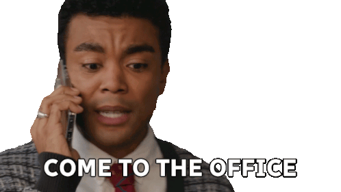 Evan, played by Alexander Nunez, on the phone, urgently telling someone to 'Come to the office immediately!'