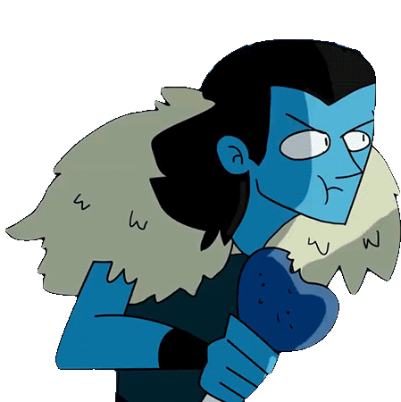 Thor, from Destripando La Historia, aggressively eats a large piece of food, showing his hunger and ferocity.