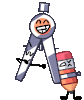 A pixel art sticker featuring a happy compass character interacting with an unhappy pencil character.
