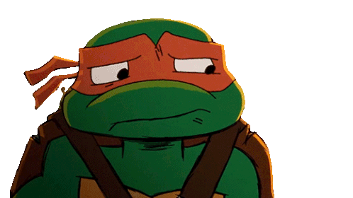 Michelangelo from Teenage Mutant Ninja Turtles looks concerned and worried, with a sad expression.
