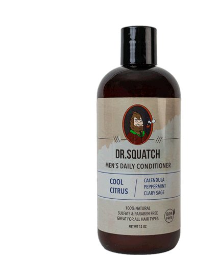 A bottle of Dr. Squatch Men's Daily Conditioner in Cool Citrus scent, highlighting its natural, sulfate and paraben-free formula.