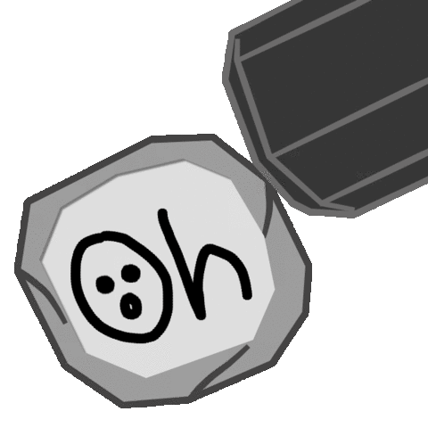 A cartoon hammer-like object vibrates on a rock base, showing a confused or shocked reaction.