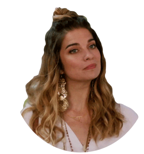Alexis Rose from Schitt's Creek transitions from a confused or unimpressed look to a softer, more understanding expression.